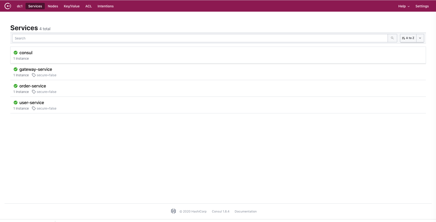 브라우저 창에 localhost:8500 을 입력을 하면, 아래와 같이 consul 관리 페이지를 볼 수 있습니다.