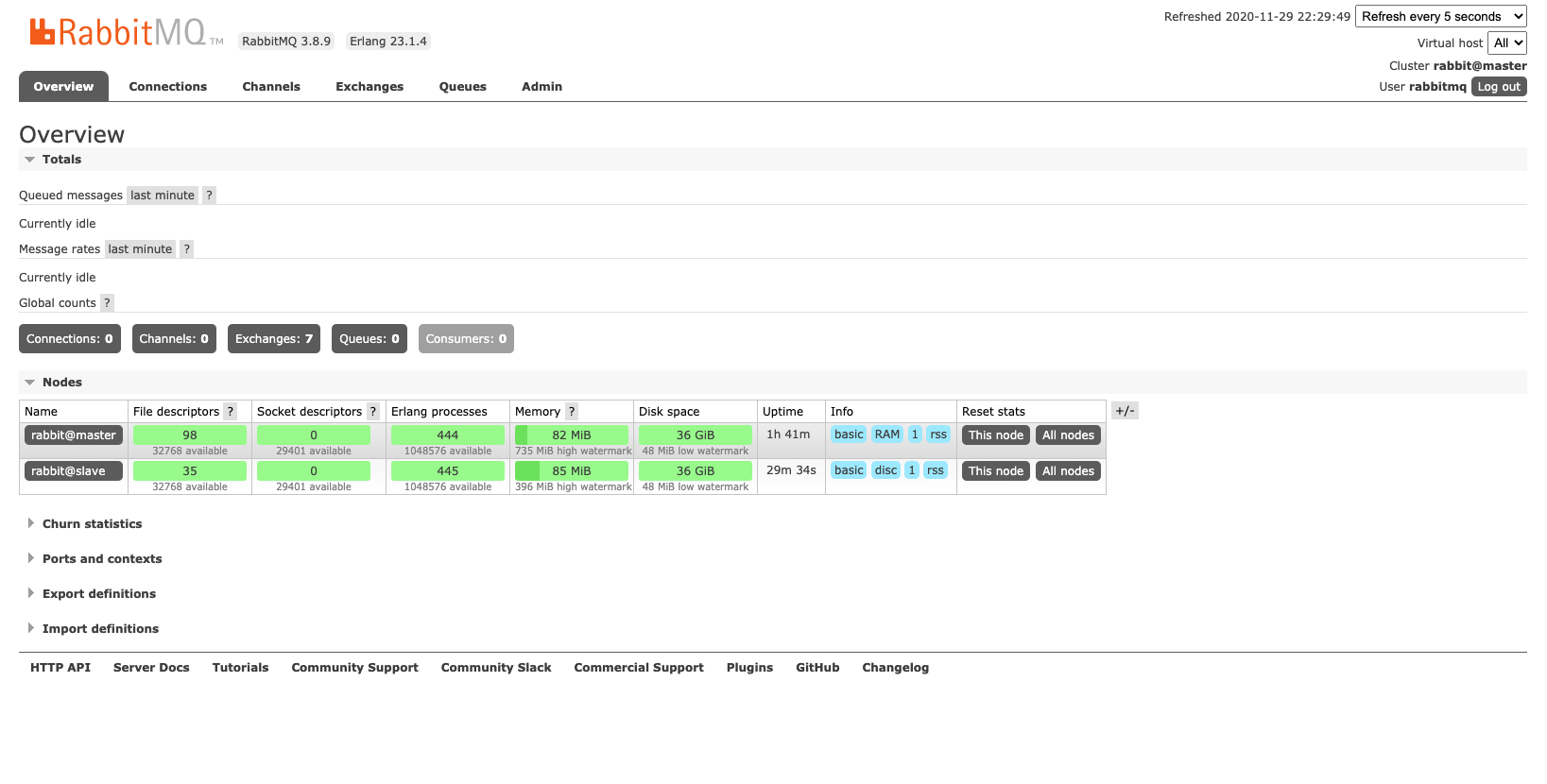 * 여기의 예는 단순성을 위해 하나의 disc 하나의 ram 노드가있는 클러스터를 보여줬습니다.
